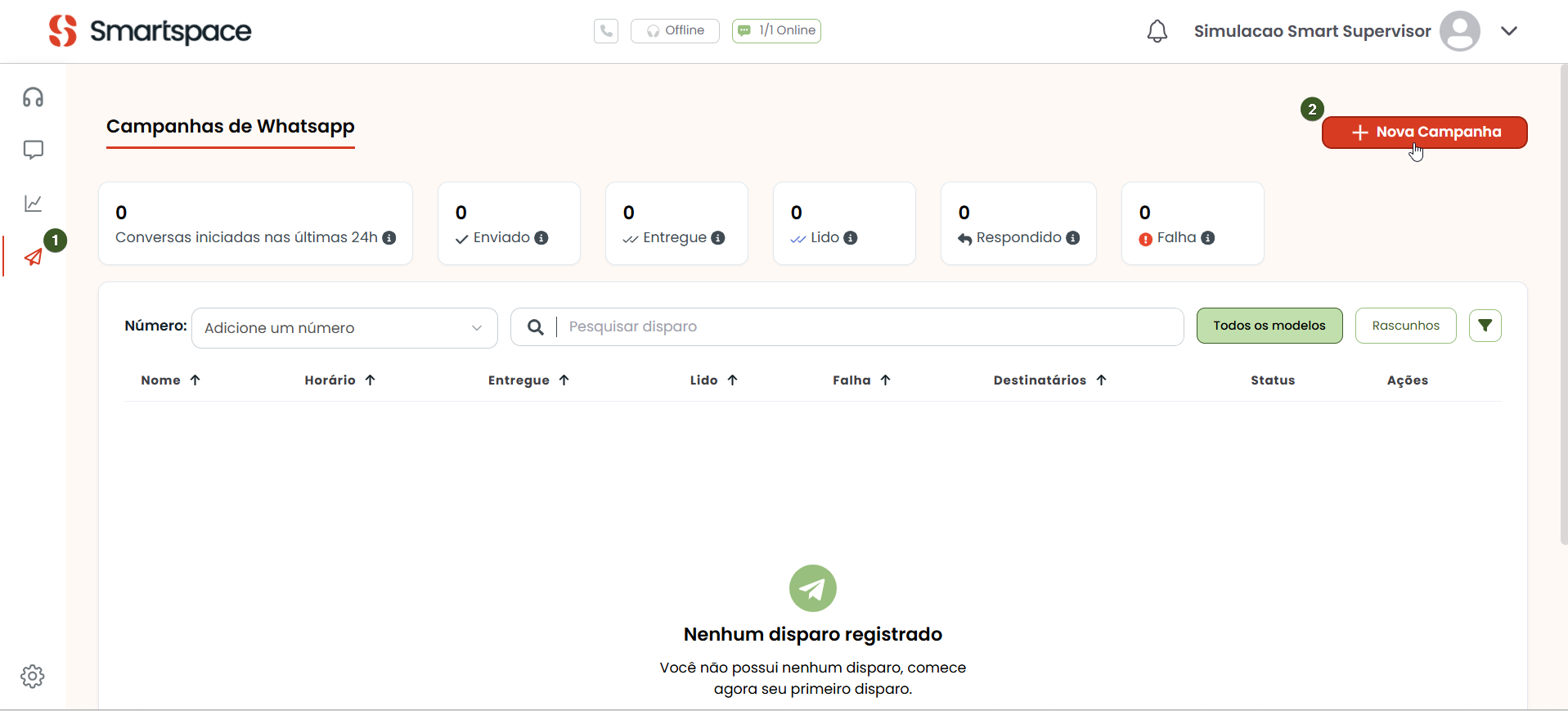 Pressione o botão + Nova Campanha, no topo direito da tela.