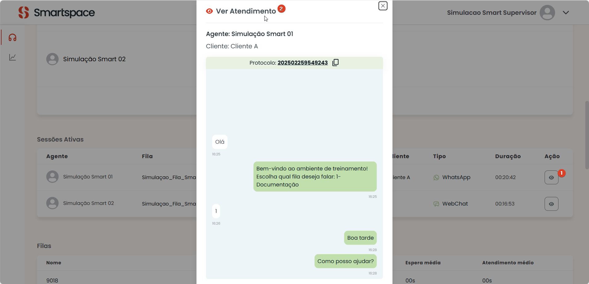 A tela de Monitoramento está exibindo corretamente o pop-up de Ver Atendimento quando utilização o botão para Visualizar atendimentos em andamento pelos Canais de chat (WebChat e WhatsApp).