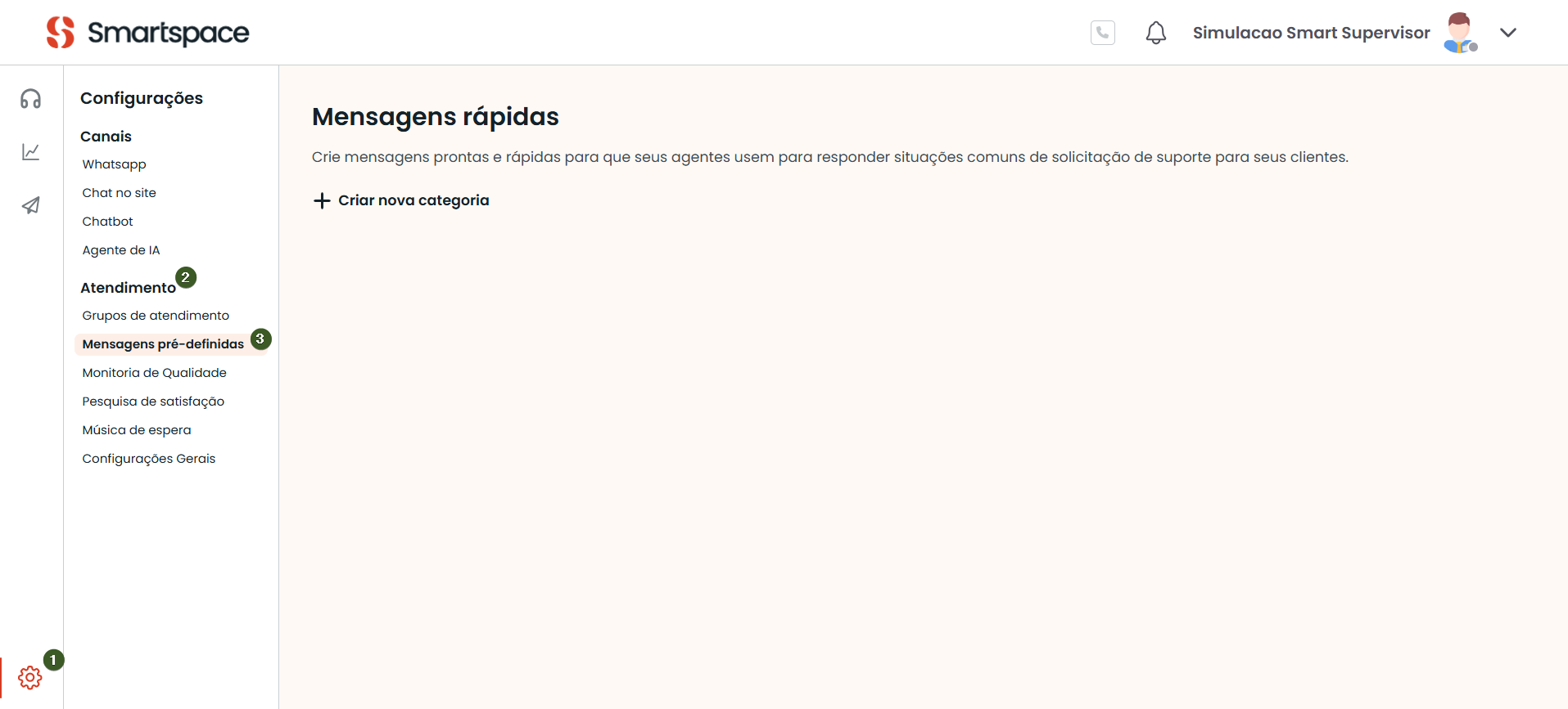 1. Acesse Configurações > Atendimento > Mensagens pré-definidas.