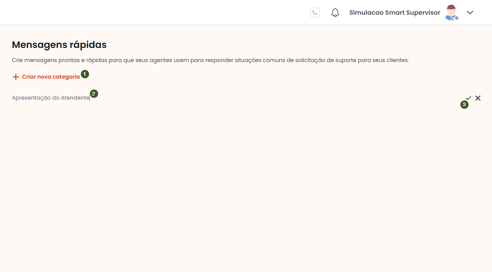 2. Pressione + Criar nova categoria. Dê um nome para identificá-la e clique no ícone para Salvar.