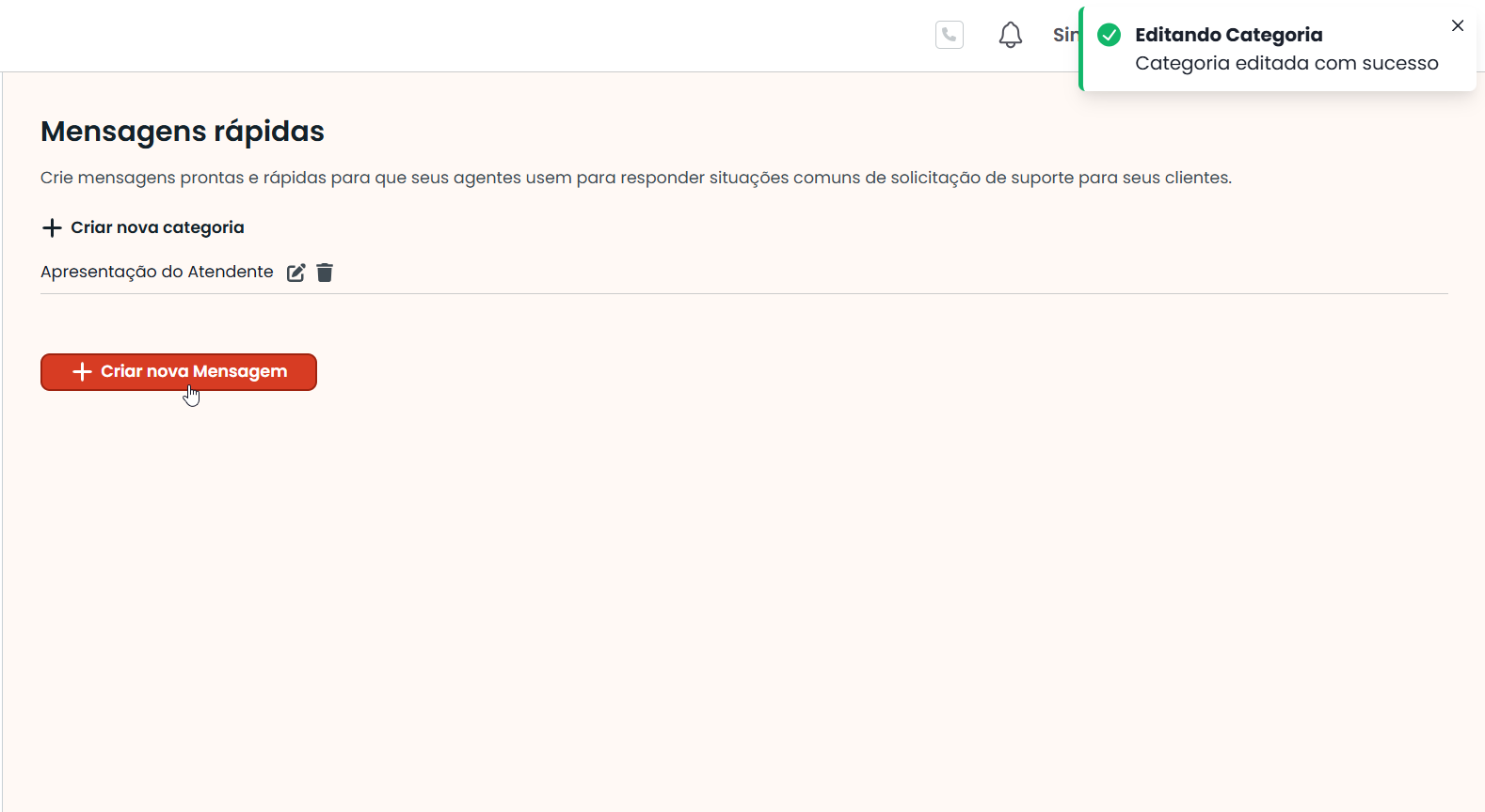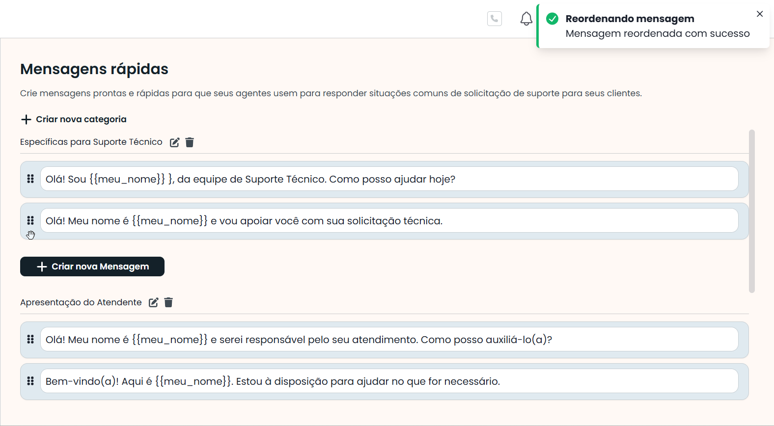 6. Mover e recategorizar mensagens: As mensagens criadas podem ser movidas dentro de uma categoria e de uma categoria para outra.