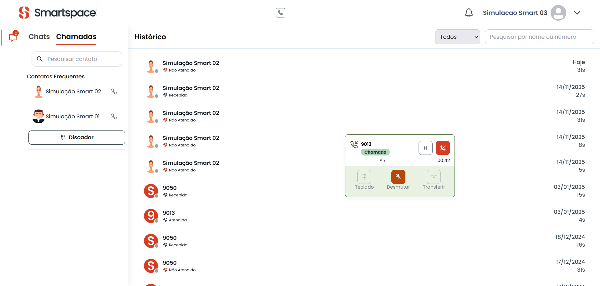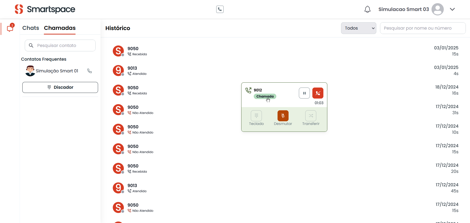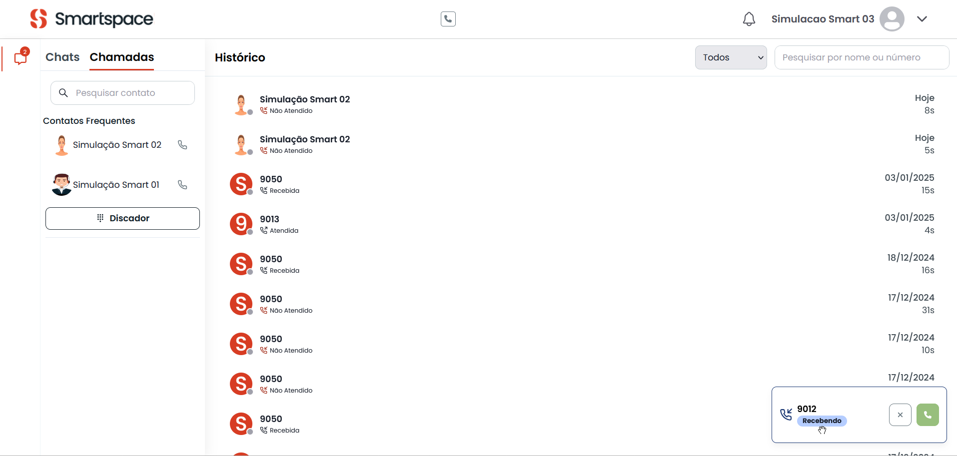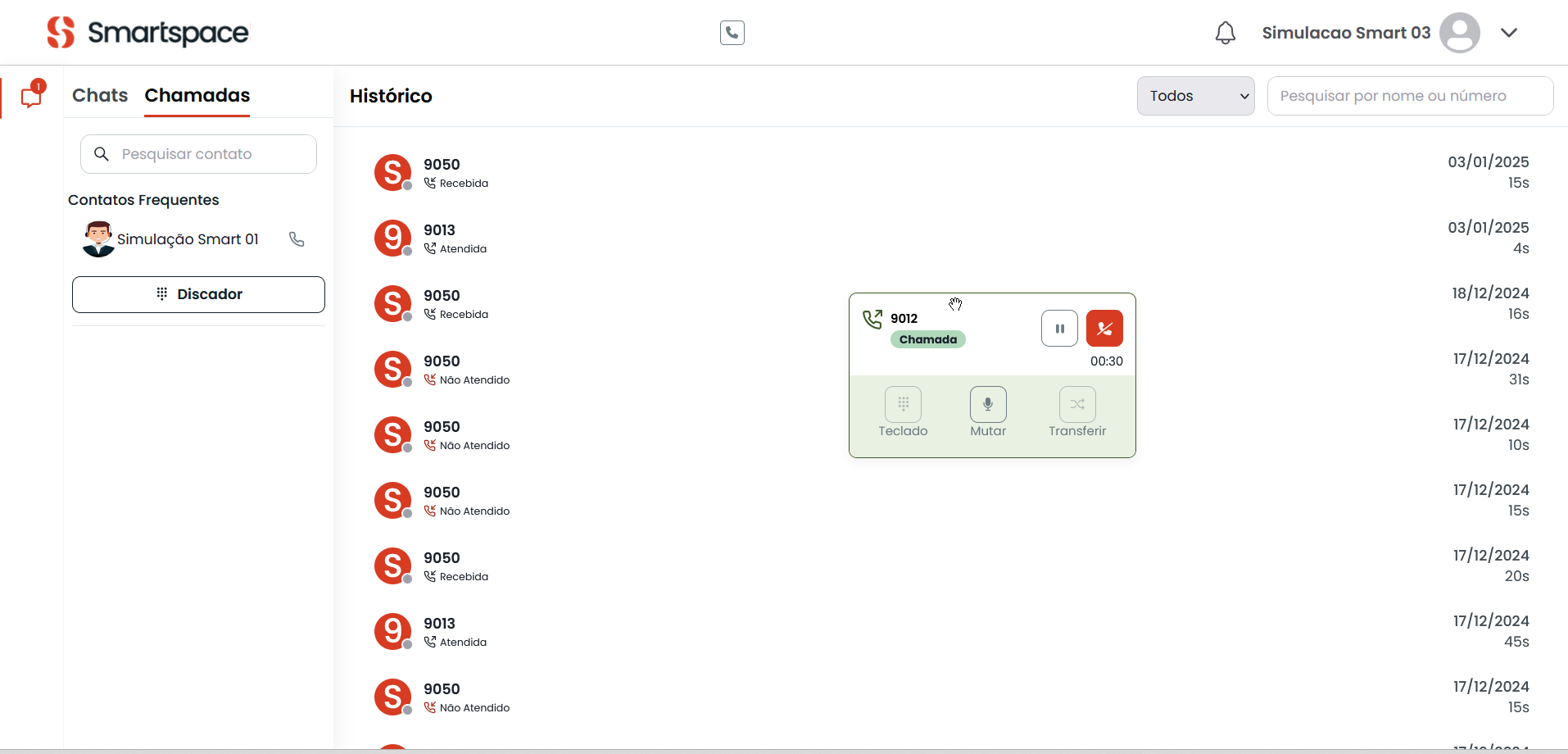 5. Quando a chamada iniciar seguirá comportamentos distintos, de acordo com os módulos da plataforma Smartspace habilitados para o usuário: