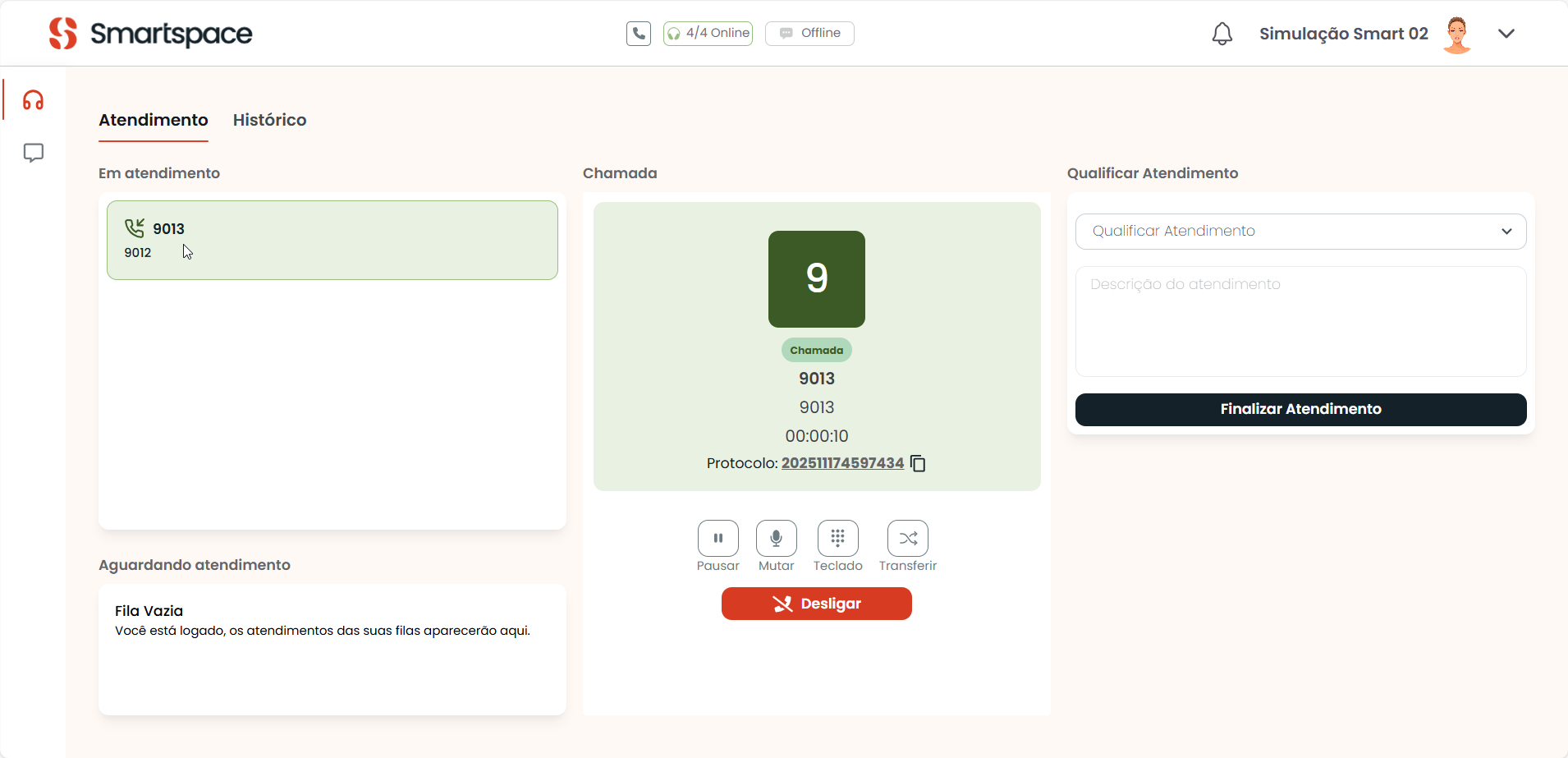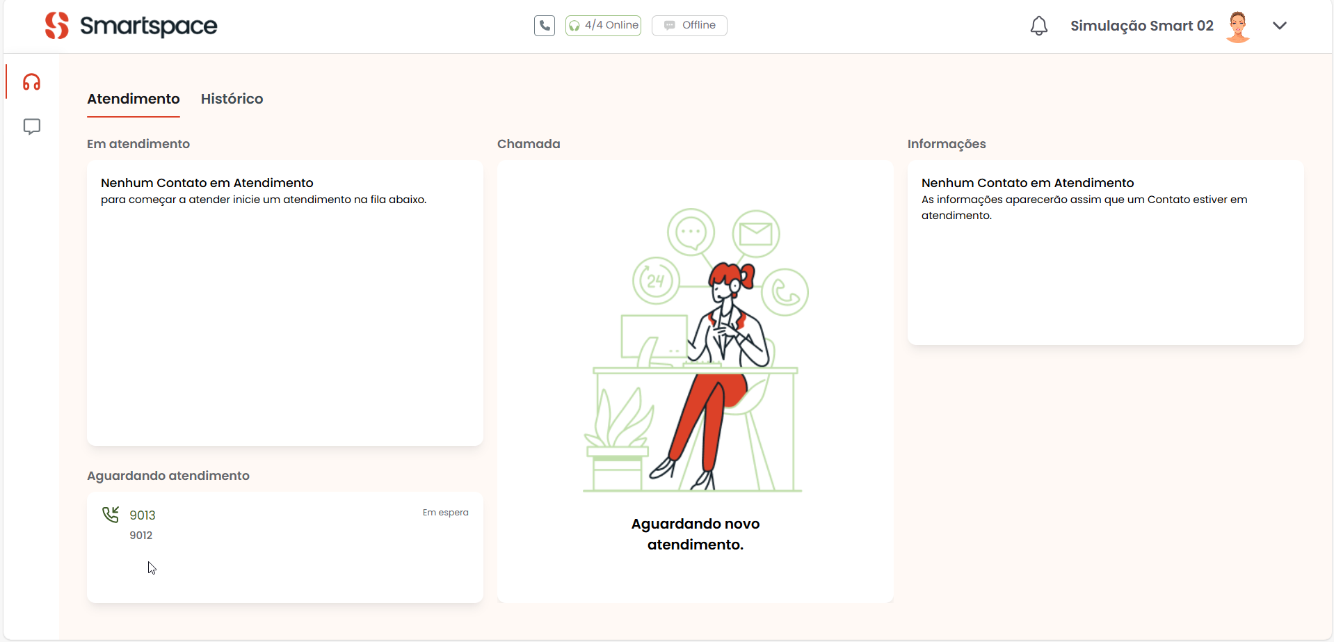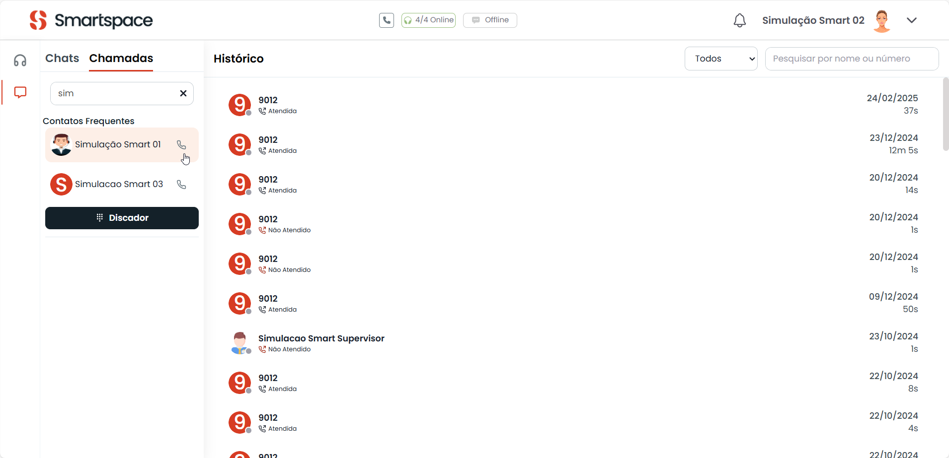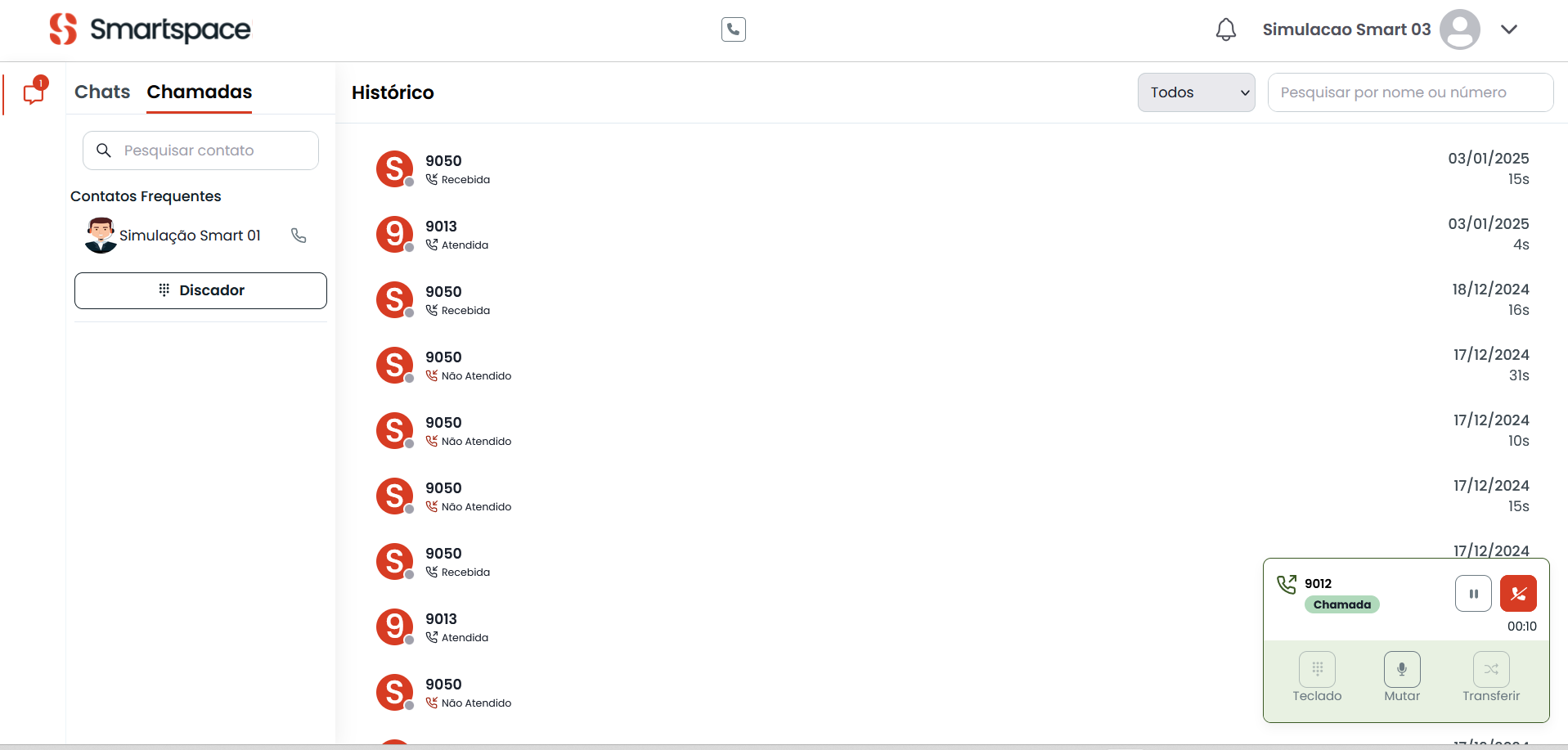 5. Quando a chamada iniciar seguirá comportamentos distintos, de acordo com os módulos da plataforma Smartspace habilitados para o usuário: