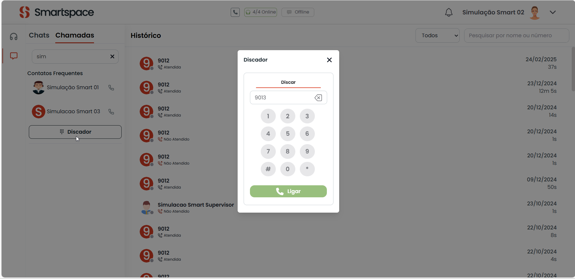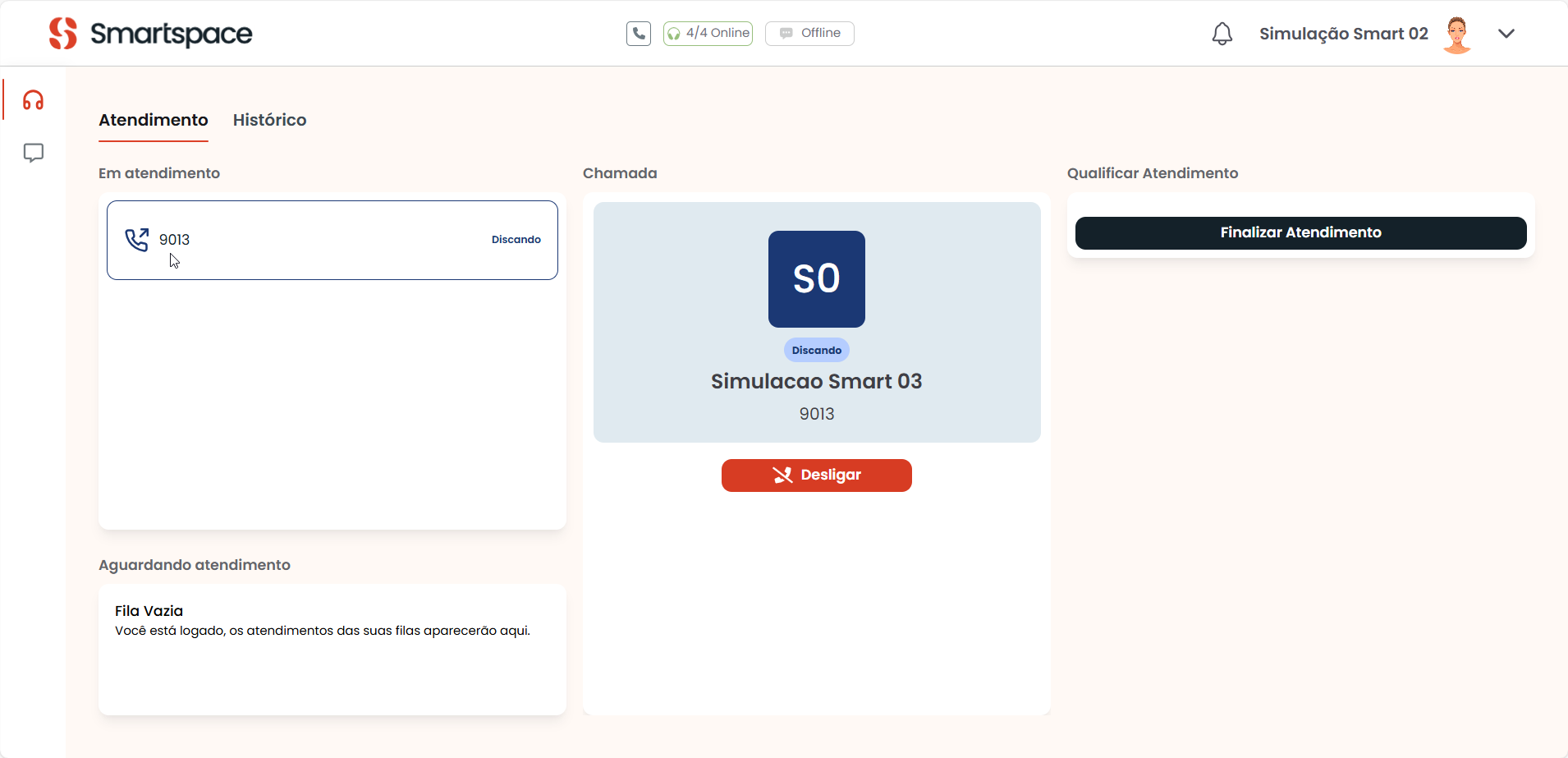 Depois de clicar no botão para ligar, a chamada seguirá um dos fluxos disponíveis, de acordo com os módulos da plataforma Smartspace habilitados para o usuário.