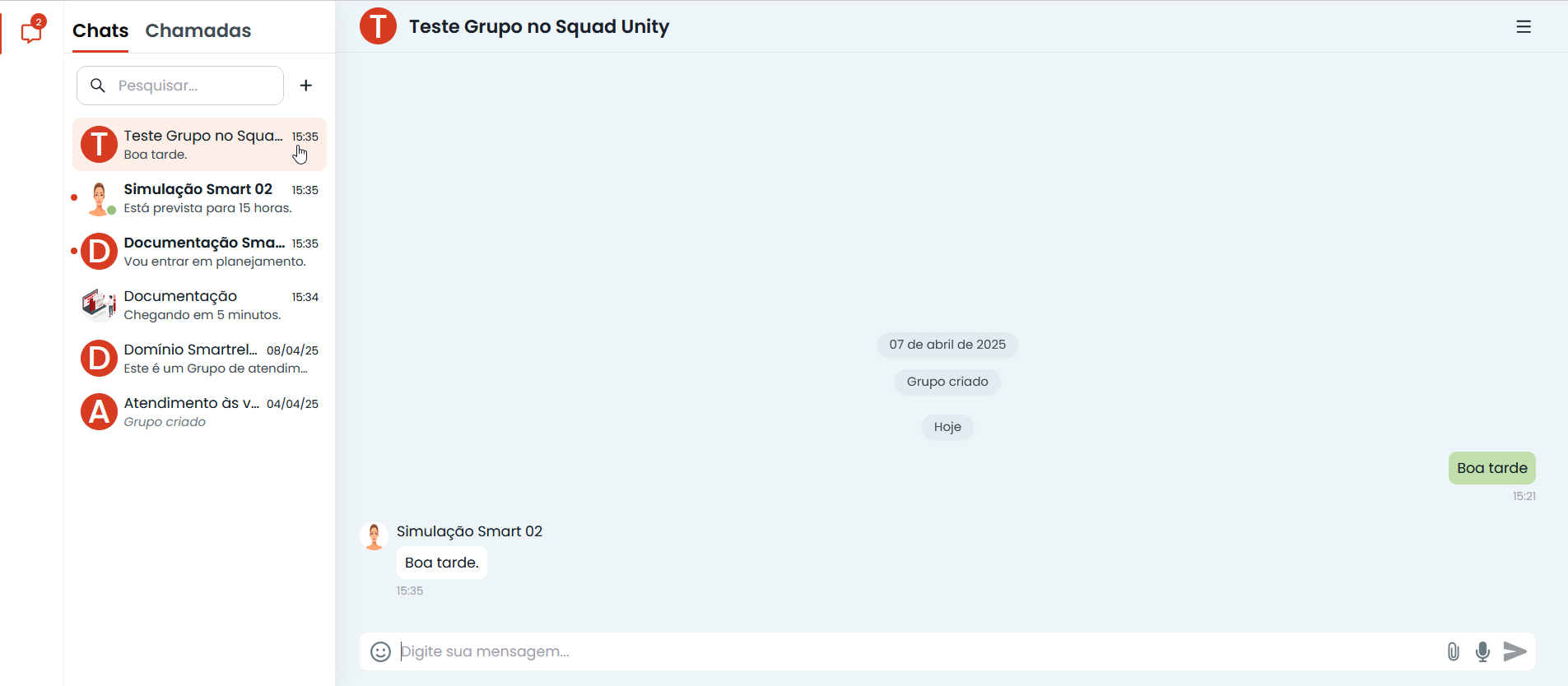 Quando um ponto vermelho aparecer ao lado do nome de um contato ou grupo, significa que existem mensagens recebidas nesses chats e ainda não lidas pelo usuário. O total de mensagens pendentes de visualização é mostrado na notificação junto ao ícone do menu do Módulo de Conversas.