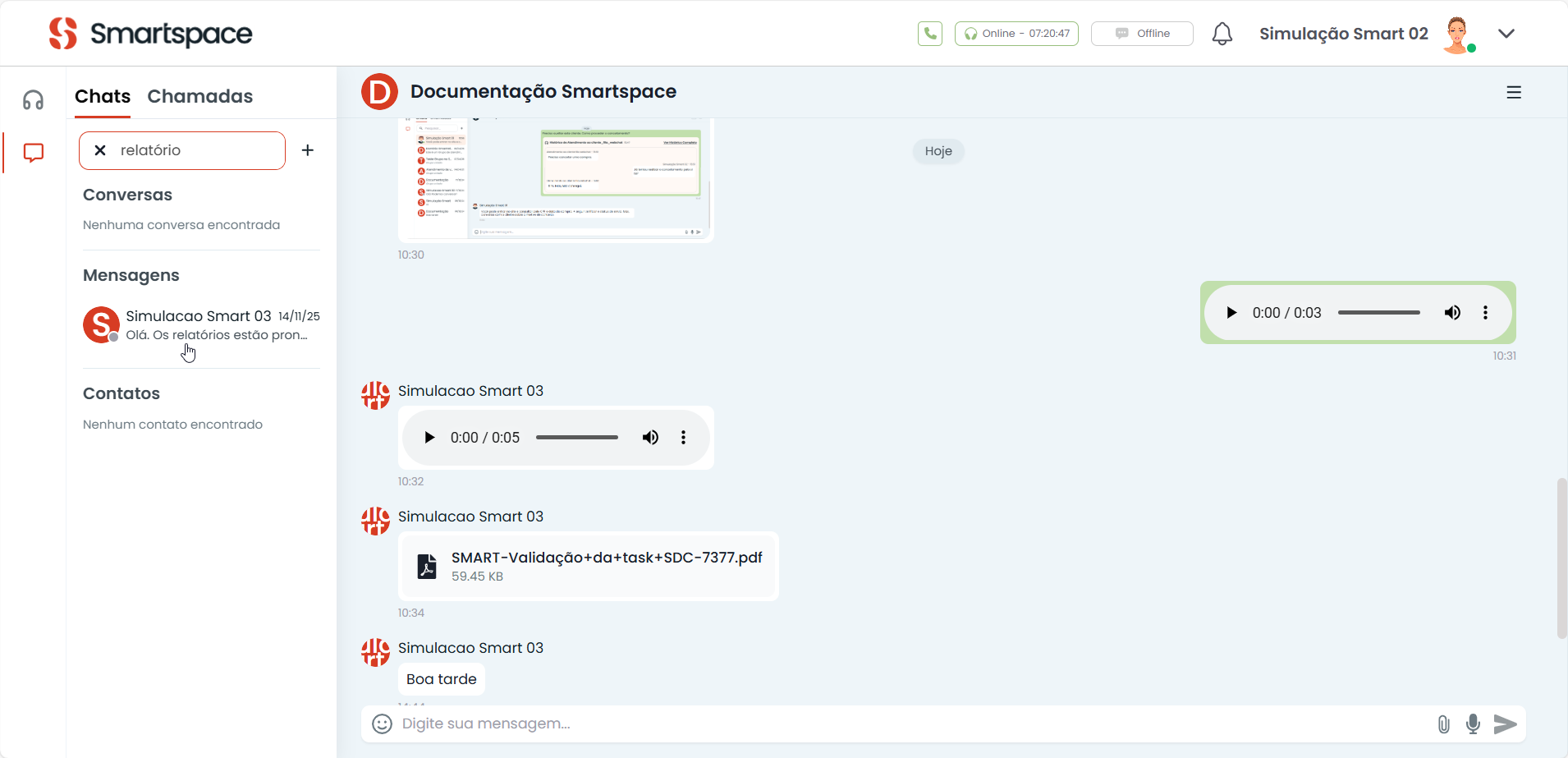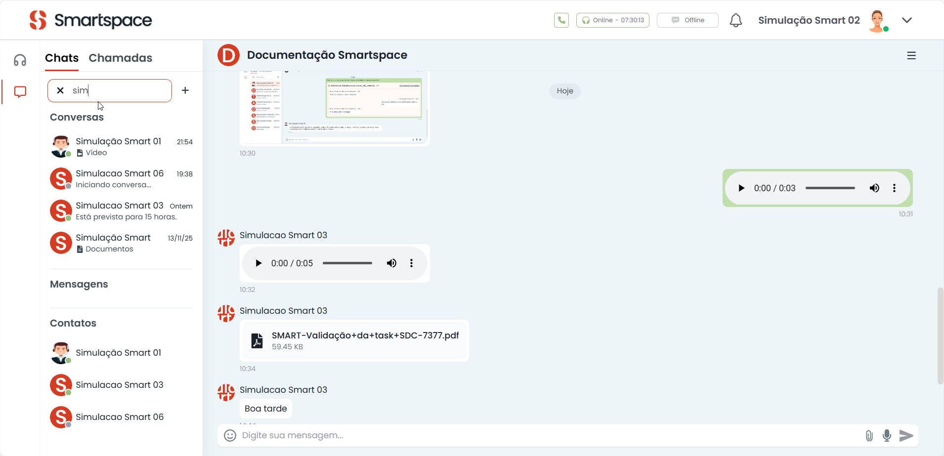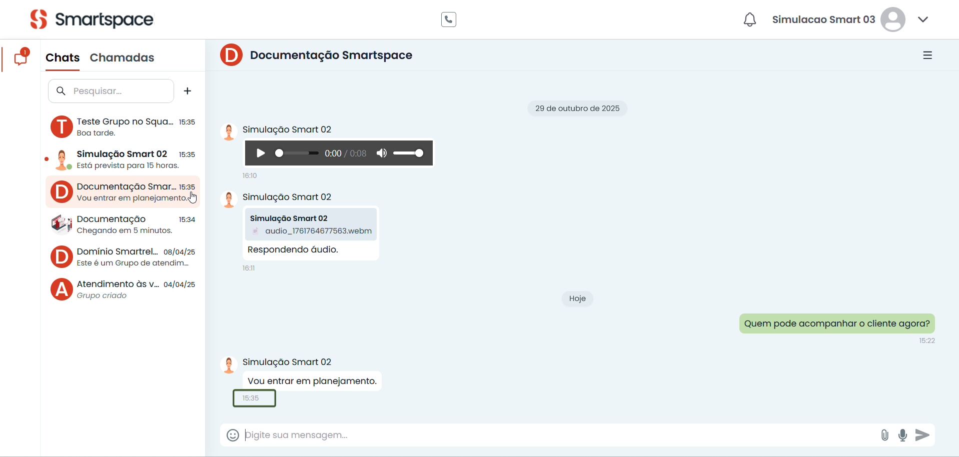O Módulo de Conversas oferece todos os recursos necessários para a comunicação no dia a dia de uma empresa, facilitando a colaboração entre equipes internas sem precisar sair da plataforma Smartspace.