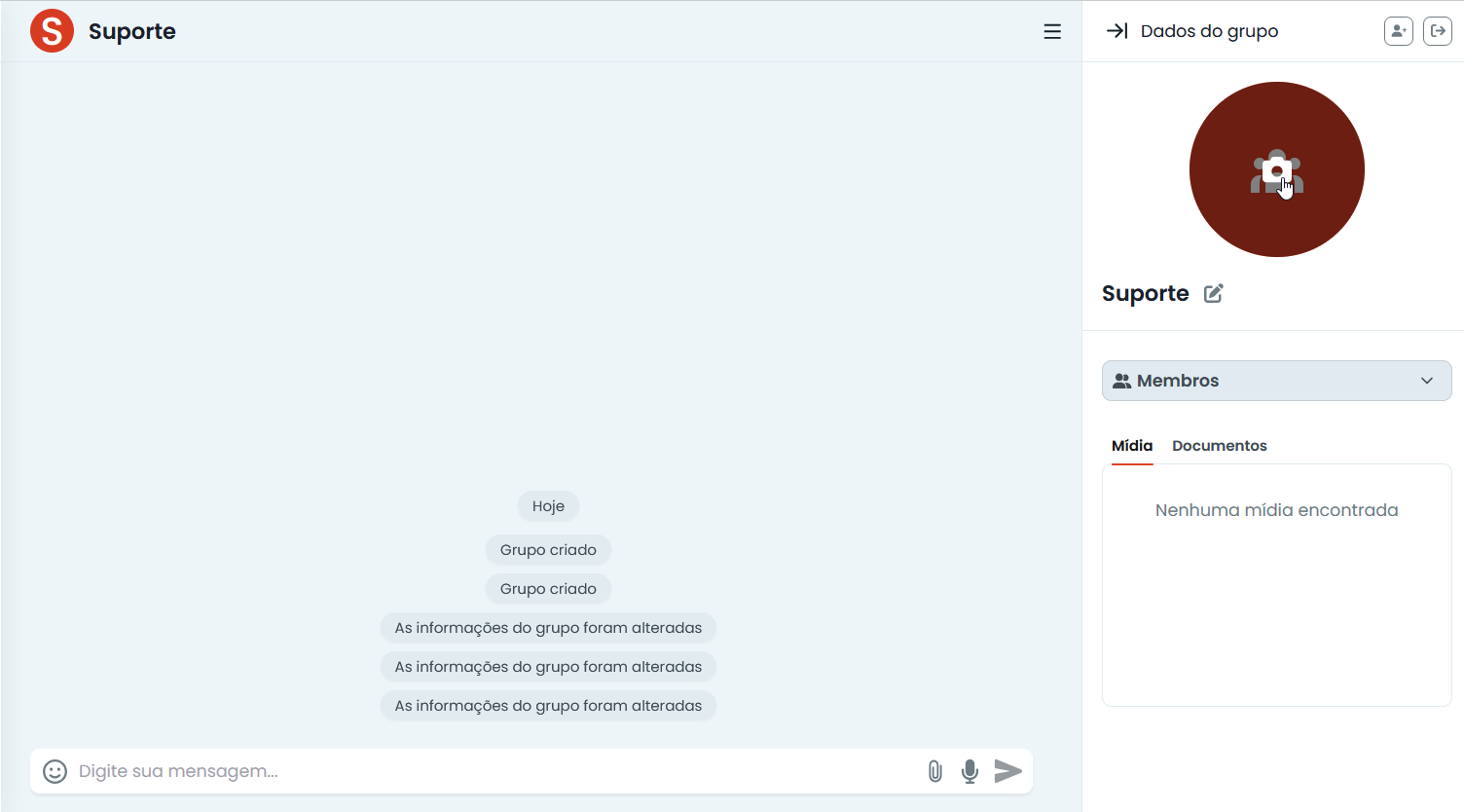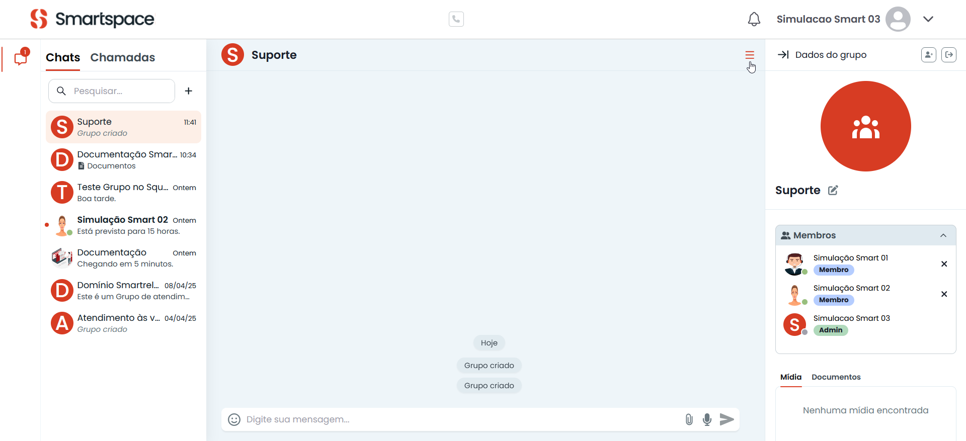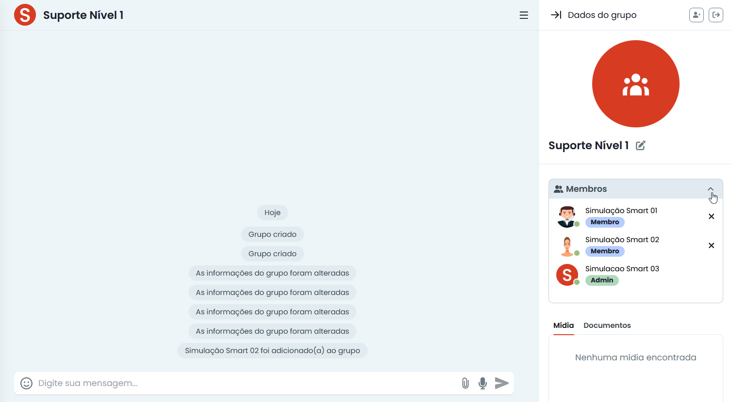 4. Chat do grupo: Mensagens, Mídias e Documentos compartilhados no chat são visíveis para todos os participantes.