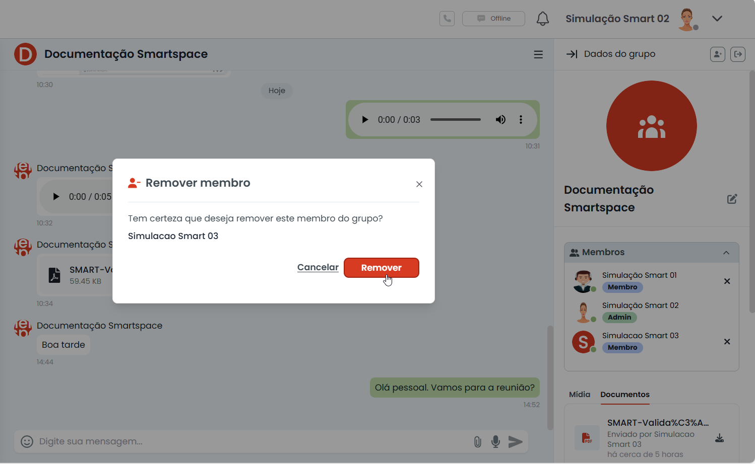 *A opção de Remover Membro só é exibida para usuário Administrador do grupo. Membros não podem remover participantes.